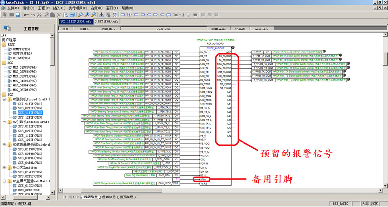 程序方面,根據以往編程經驗進行邏輯總結歸類,將各火電項目變化不大和重復利用的邏輯都分別編譯成塊,方便調用。通過反復的程序調試和思索,調整不方便檢修的段落,留有一定的備用引腳和常用的報警信號接口,提升程序移植時的通用性和易用性。程序編寫過程中注意程序的歸類、整潔和易讀,方便以后維護人員檢修設備時對程序的查詢。