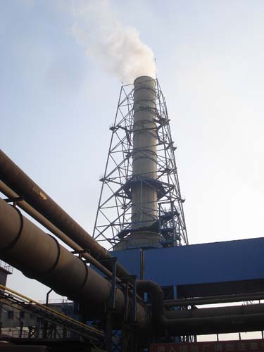 脫硫塔采用新型的雙循環脫硫塔。主塔前設濃縮降溫塔,主塔塔體為噴淋及格柵填料組合塔,下段為吸收液池兼氧化槽,上段為SO2吸收段;脫硫塔直徑Ф12.5m,塔高32.8m(含過渡段)。脫硫凈煙氣通過塔頂濕煙囪排放,濕煙囪出口標高75.00m。